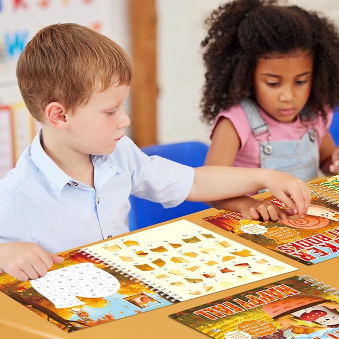 - Develop Skills: Take the fun and learning experience to new heights with our autumn sticker paint books. Boost hand-eye coordination, color and number recognition, and stimulate cognitive development. Ideal for Thanksgiving gifting and fall theme party favors, these fall sticker books for kids bring joy and foster imagination. Unleash the combined power of play and education with our exceptional sticker paint books.