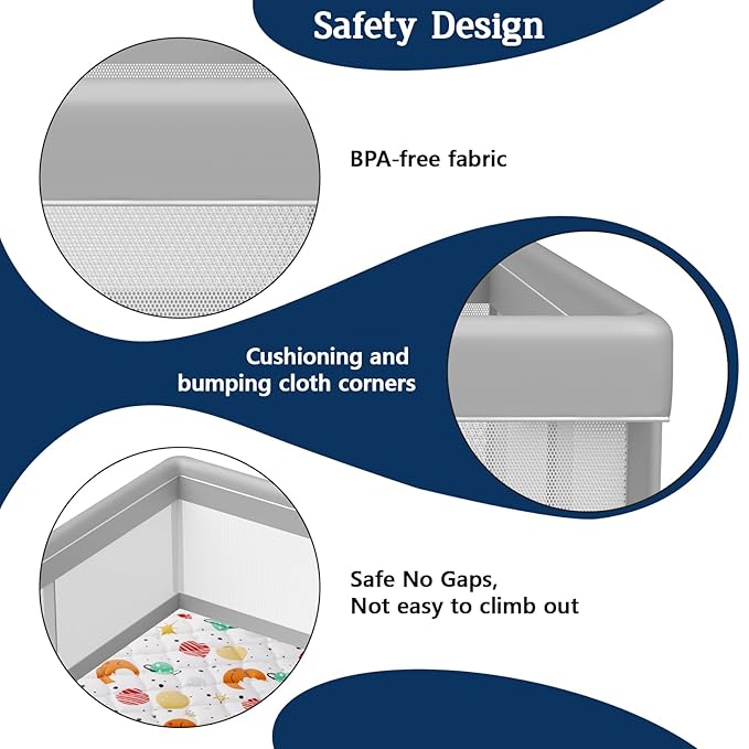 - 【FREE YOUR HANDS】With Jaobeem baby playpen with mat, It can help you limit your baby crawl and play in a safe area. Thus you can have a little spare time on relaxing, cooking, housework, or just free hands, while don't have to worry about them escaping and causing havoc.