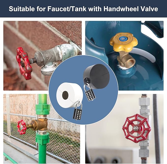 - Outdoor Faucet Cover: The door lock for renters not only prevent door locks from being maliciously turned, but they can also lock outdoor faucet switches to prevent children from playing with water or water theft. Water spigot lock can also be used to cover garden hose bib locks, propane tank locks, gate valve lockout and more
