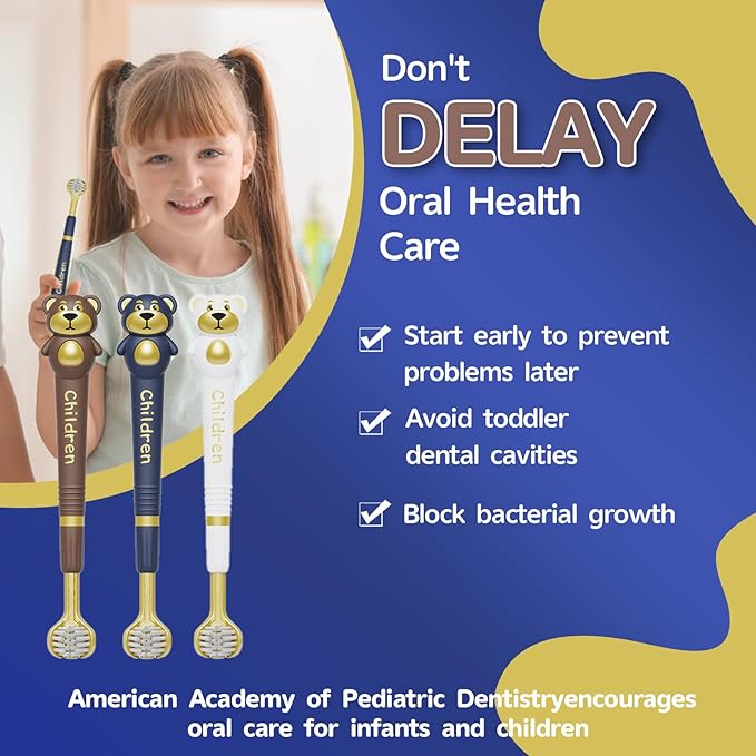 - 【Value 3-Pack for Family Convenience】 Our economical set includes three vibrant toothbrushes (white, brown, blue) suited for both boys and girls. This triple-angle toothbrush follows the ADA recommendation to replace toothbrushes every 3 months, keeping your child’s oral care fresh and effective.