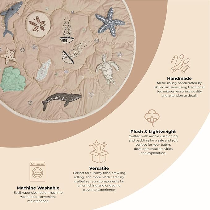 - Soothing Sea Life Theme - Our sea life playmat is a perfect addition for either a baby boy nursery or baby girl nursery, and fits in seamlessly with any ocean nursery decor or under the sea nursery