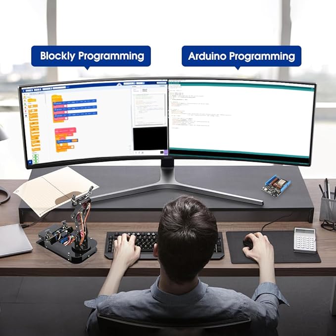 - 【Beginner-Friendly】: With the instruction guide of the preset coding files, this tutorial will guide you step by step on how to build and code a robot through ACEBOTT Scratch or Arduino IDE. When you need help, the ACEBOTT technical team is always on call to provide support. (Note: This robotic arm kit does not include tennis balls)