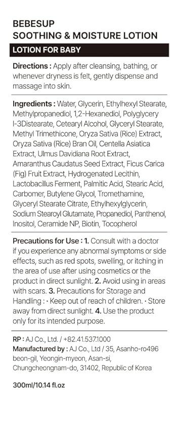 BEBESUP- 베베숲 Daily Hydration Baby Lotion | Korean Skincare for Sensitive & Atopic Skin 100-Hour Hydration Organic Rice & Ceramide Formula Hypoallergenic Fast Absorbing 10.14 fl. oz