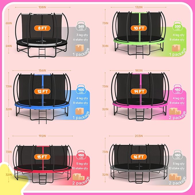 BCAN 8FT 10FT 12FT 14FT 15FT 16FT Recreational Trampoline with Enclosure for Kids Adults, ASTM Approved, Outdoor Trampolines with Ladder for Kids
