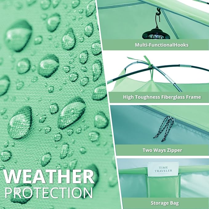 - đŹď¸ă360° Cool Breeze Ventilationă 3D airflow system combined with panoramic mesh windows + double door design prevents stuffiness. Enhanced double convection ventilation of the tent allows for more air circulation inside and outside the tent, and you can also feel the 360° panoramic view of the surrounding scenery inside the tent! Always provide a cool and comfortable environment for your beach trip and camping trip!