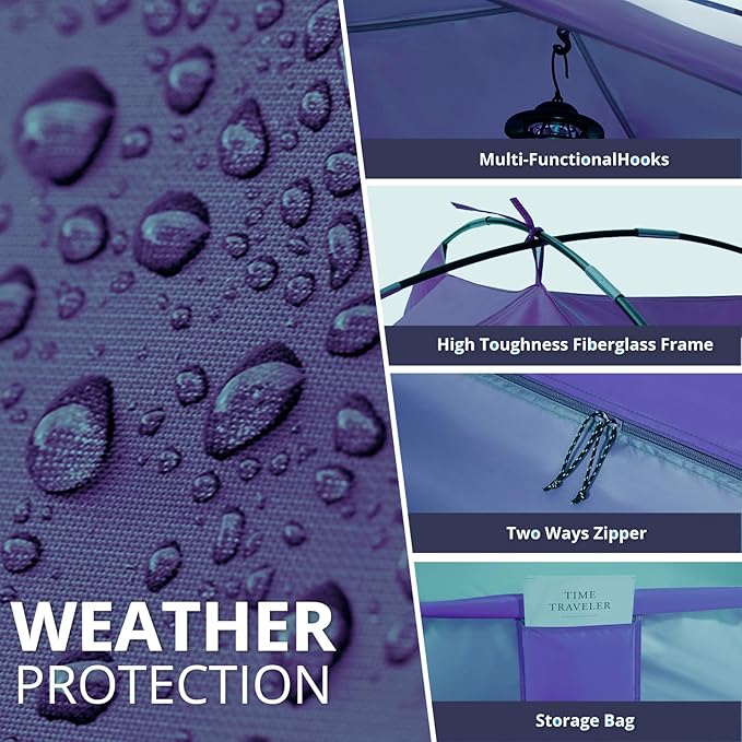 - đŹď¸ă360° Cool Breeze Ventilationă 3D airflow system combined with panoramic mesh windows + double door design prevents stuffiness. Enhanced double convection ventilation of the tent allows for more air circulation inside and outside the tent, and you can also feel the 360° panoramic view of the surrounding scenery inside the tent! Always provide a cool and comfortable environment for your beach trip and camping trip!