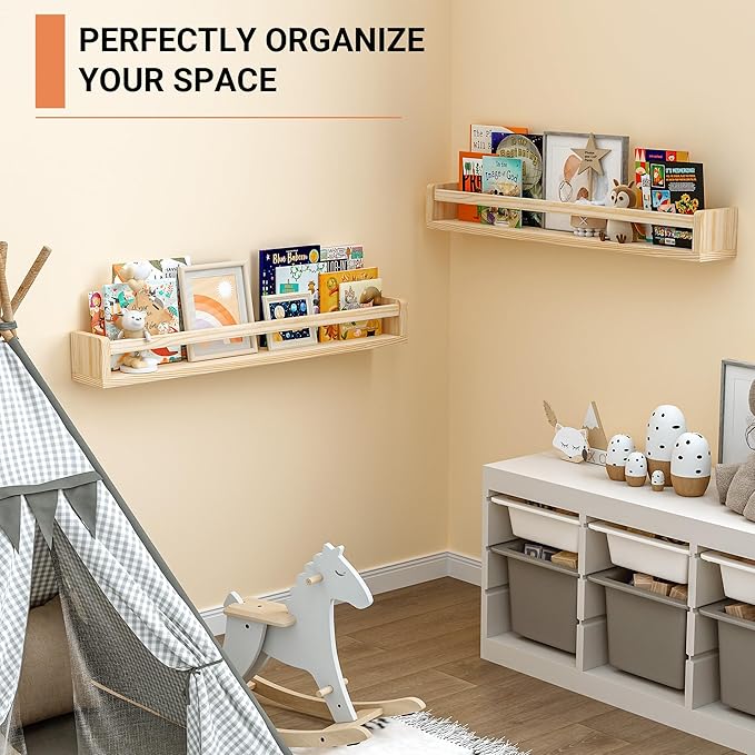 - [Natural Kids Bookshelf] - This wall bookshelf is meticulously handcrafted from solid pine wood, ensuring kids' safety. Its sturdy and durable construction keeps stored items secure. With a minimalist design, the wall shelf is great complements all styles of home decor