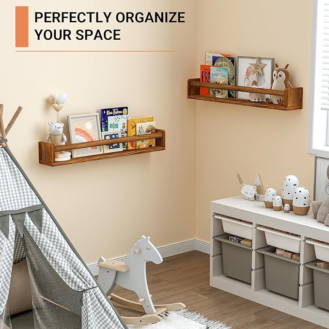 - [Ample Storage Space] - Measuring 24 inches, these nursery shelves offer ample room for organizing children's books, toys, photos, and other small items. They encourage a love for reading while keeping spaces tidy. With 0.6β thicken panels, each bookshelf can hold up to 30 LBS