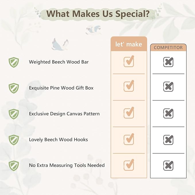 - ๐ฟ๐ช๐๐๐๐๐๐๐ ๐ซ๐๐๐๐๐ ๐ญ๐๐ ๐พ๐๐๐: Adorned With Hand-Painted Rainbow And Eucalyptus Designs On Durable, Waterproof Canvas, Matched With Rainbow/Bird Beechwood Hooks. The Soothing, Neutral Color Make Our Growth Chart Perfect Fits Both Little Boys And Girls Nursery Decor, Adding A Warm Touch To Your Home While Complementing Bohemian-Style Decor.