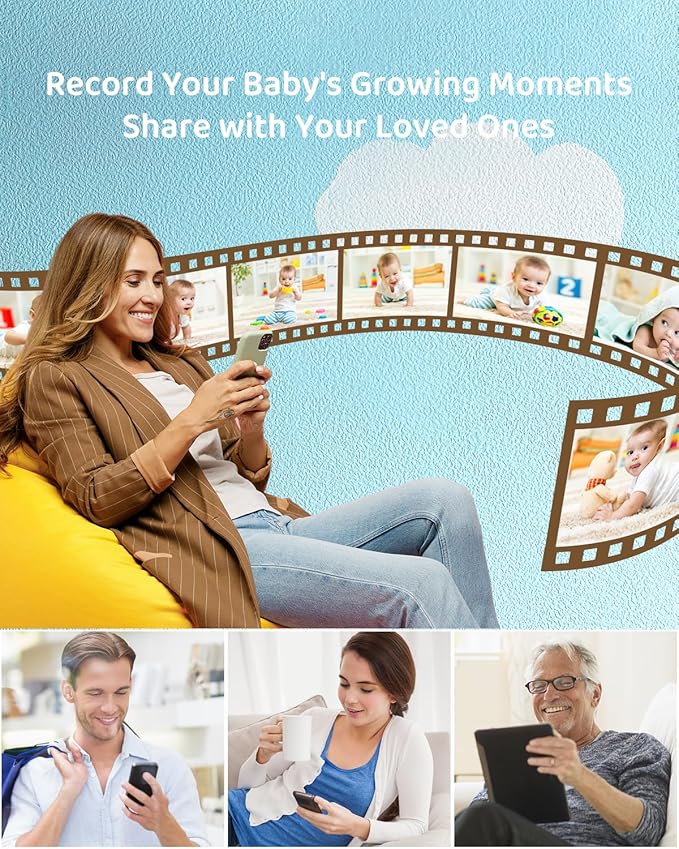 - Remote Pan-Tilt-Zoom:The baby monitor with camera and night vision cover every angle with its 355 degree pan and 60 degree tilt and digital 4 X zoom in/out feature, you can remotely watch your baby more closely via your cellphone App and LCD screen