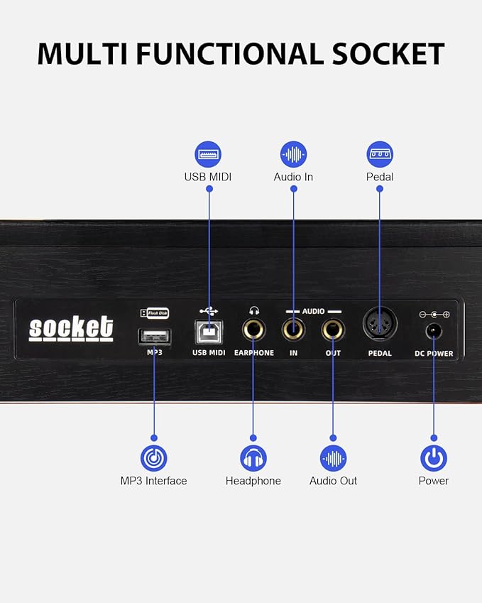 88 Key Digital Piano Keyboard for Beginners - Full Size Semi Weighted Wooden Electric Piano Set with Stand, Triple Pedal, Headphone,Carry Bag - Supports USB-MIDI Connecting (Wood Grain Black)