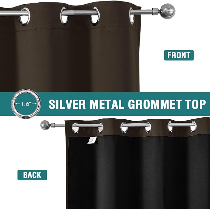 - SET DETAILS: Set of 2 total blackout curtain panels per package. Each lined curtain measures 60 inch wide by 63 inch long with 10 silver metal grommets (1.6 inch inner diameter) on top, easy to install and slide.