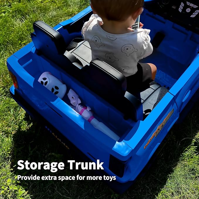 - 19" WIDE TWO SEATER: Hikiddo 2 seater ride on car for kids with remote control also allows two children to ride together comfortably with 110lbs Max capacity. Additionally, it includes a storage space for kids to keep their toys.