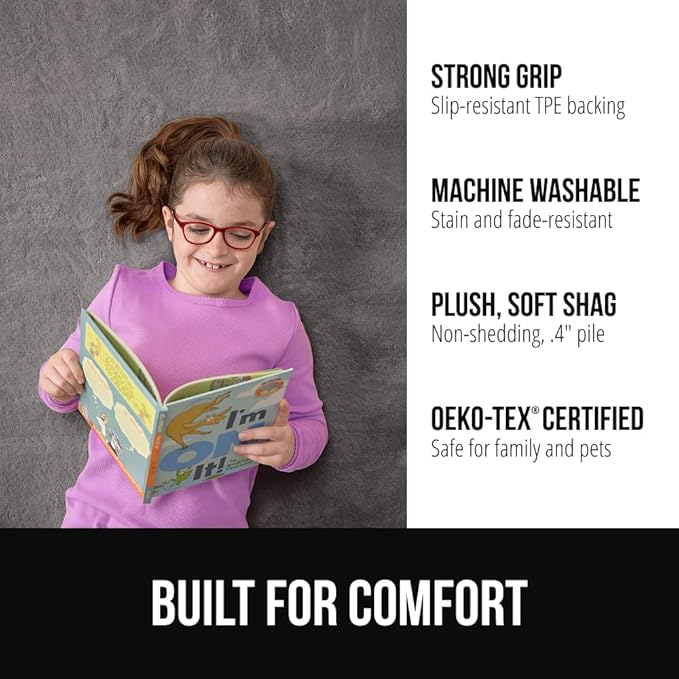 GORILLA GRIP Ultra Soft Washable Area Rug, 5x7, Stain and Slip Resistant Plush Thick Carpet for Bedroom Living Room, No Shed Floor Rugs, Pet Friendly, Dorm Essentials, Kids Nursery Home Decor, Gray