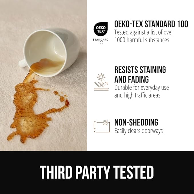 - OEKO TEX STANDARD 100 CERTIFIED: rest assured, our rugs have been given the Confidence in Textiles label, and have been tested for harmful substances according to OEKO TEX Standard 100; perfect for children, adults and pets