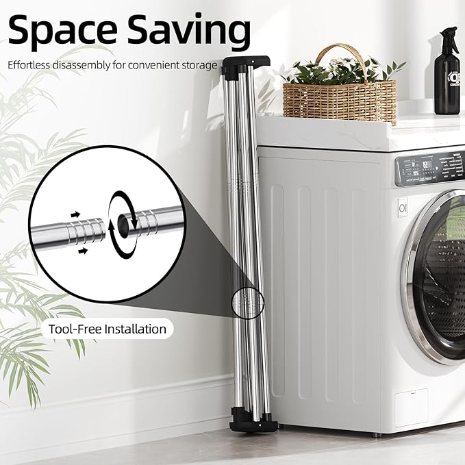 - Easy Assembly - This laundry drying rack is quite easy to put together. Just screw 2 tubes into 1 leg and snap the drying pole into place.