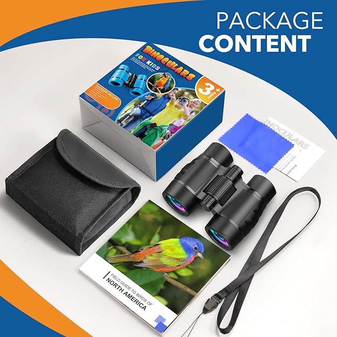 - Adventure Accessories: This fun binoculars is a perfect tool for your kid's outdoor adventure! Package Includs 1x 4x30 Binoculars, 1x Bird Watching Manual, 1x Carrying Canvas Bag, 1x Neck Strap, 1x Lens Wiping Cloth