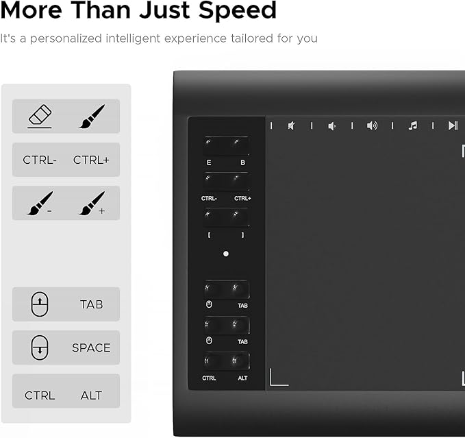 - Drawing tablet for pc Customizable Shortcuts for Enhanced Efficiency: ienRon art tablet featuring 12 customizable shortcuts keys and 10 soft multimedia keys, the ienRon drawing tablet allows you to personalize your favorite shortcuts, enhancing convenience and efficiency in different software applications. This makes it ideal as a drawing Pad for PC