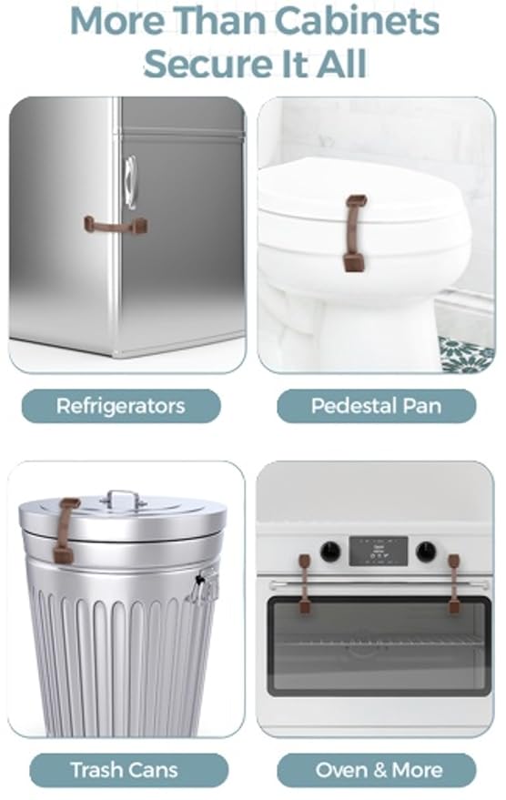 - OTHER USES: Cabinet safety locks and drawer locks baby proofing are used for baby cabinet safety latches, fridges, trashcans, ovens and much more. Baby proof cabinet locks, drawer baby proofing and baby proof drawer locks are definitely a mult-purpose mechanism.