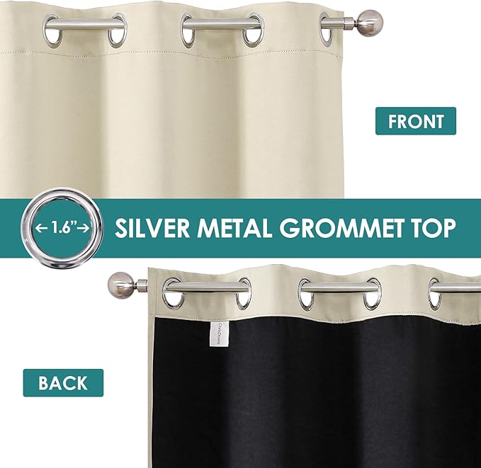 ChrisDowa 100% Blackout Curtains 78 inch Long for Bedroom with Black Liner, 2 Thick Layers Total Blackout Thermal Insulated Grommet Window Curtains 2 Panels Set (Light Beige, 42 x 78 Inch)