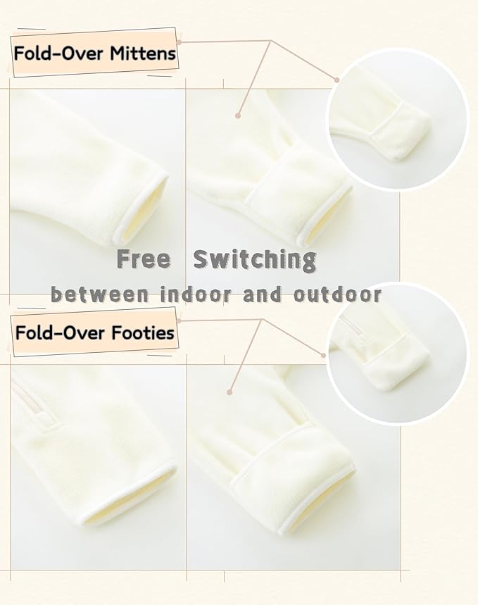 - [Thoughtful design] The double zipper design makes it easy to put on and take off jumpsuits, effortlessly solving the problem of changing diapers! Fold-over mittens and footies, as well as a hooded design, provide extra warmth for babies in cold weather. Indoor and outdoor free switching, can meet your various wearing needs, warm and fashionable.