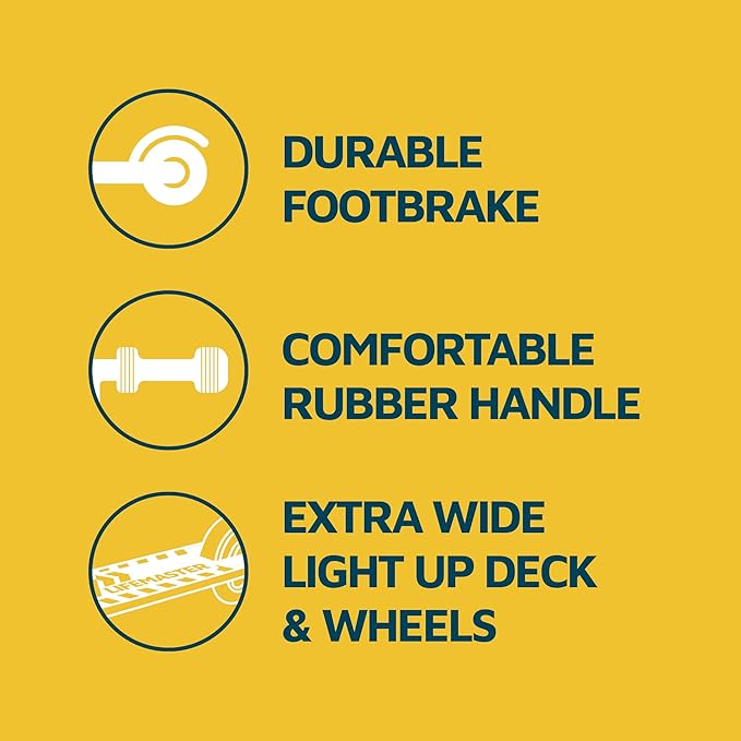 - ATTRACTIVE MULTI-COLOR LED: Bring excitement to every ride with vibrant, multi-color flashing lights on deck and wheels. Better visibility during evening rides, making this scooter safer for nighttime use. Three AA batteries are required (not included)