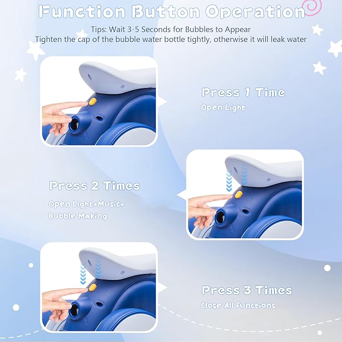 - Multiple pleasures: 1 car with 4 modes for multiple uses value for money 1. Sliding walking mode 2. Electric self driving mode 3. Remote brake mode 4. Bubble blowing mode
