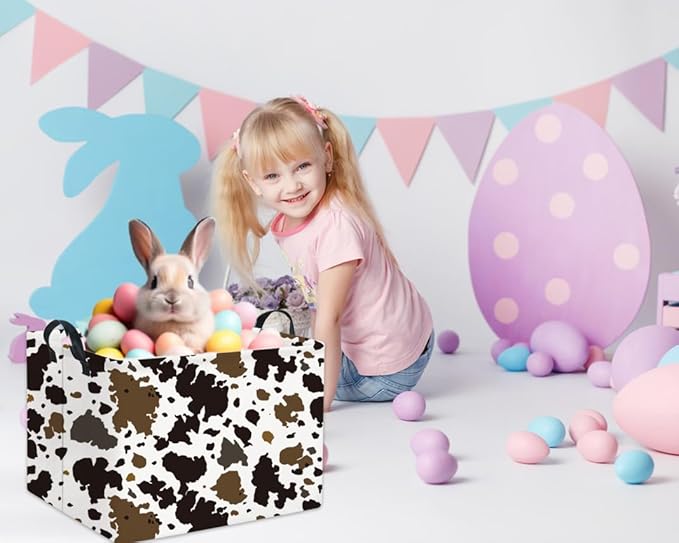 HIYAGON Rectangular Cow Basket Kids Basket Baby Storage Bin Toy Basket Organizer Box for Boys Room Decor(Cow)