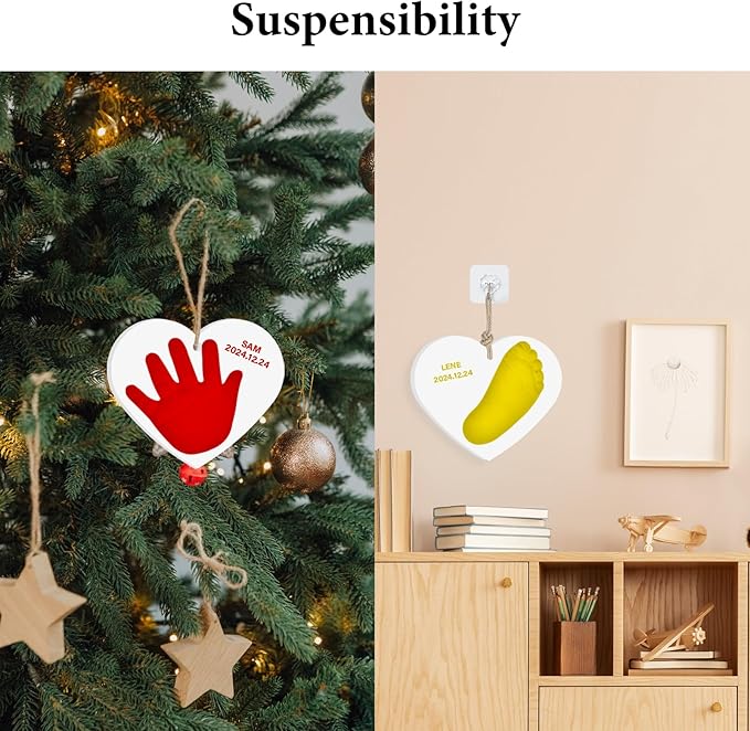 - Record Your Baby's Growth:Create Meaningful memories Don't let newborn exhaustion erase those precious memories.This baby souvenir clay ornament captures their perfect little handprint, footprints, fingers and toes. It's a must for newborns!