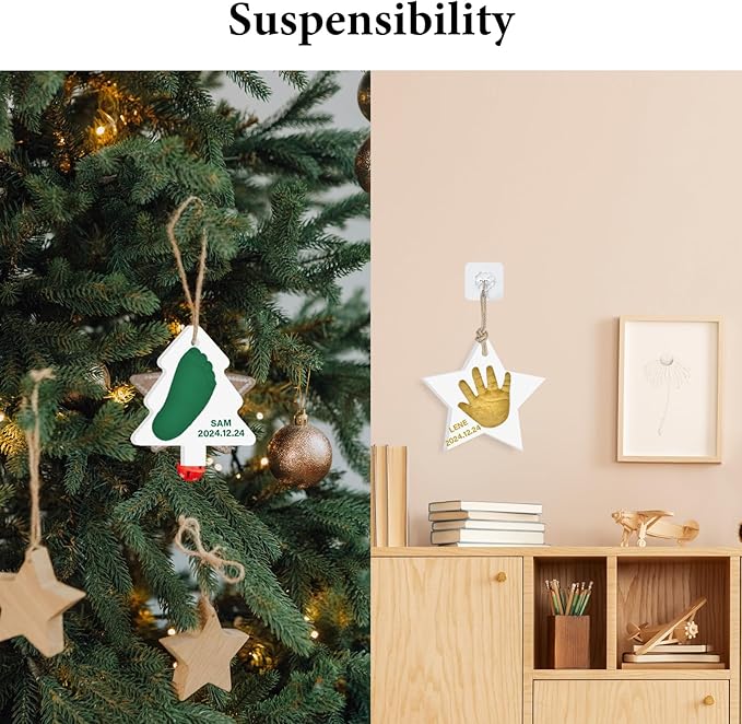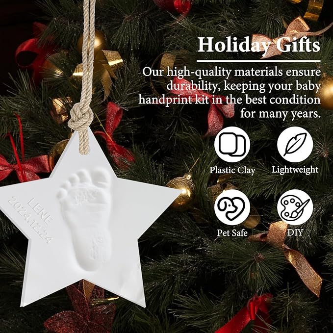 - Record Your Baby's Growth:Create Meaningful memories Don't let newborn exhaustion erase those precious memories.This baby souvenir clay ornament captures their perfect little handprint, footprints, fingers and toes. It's a must for newborns!