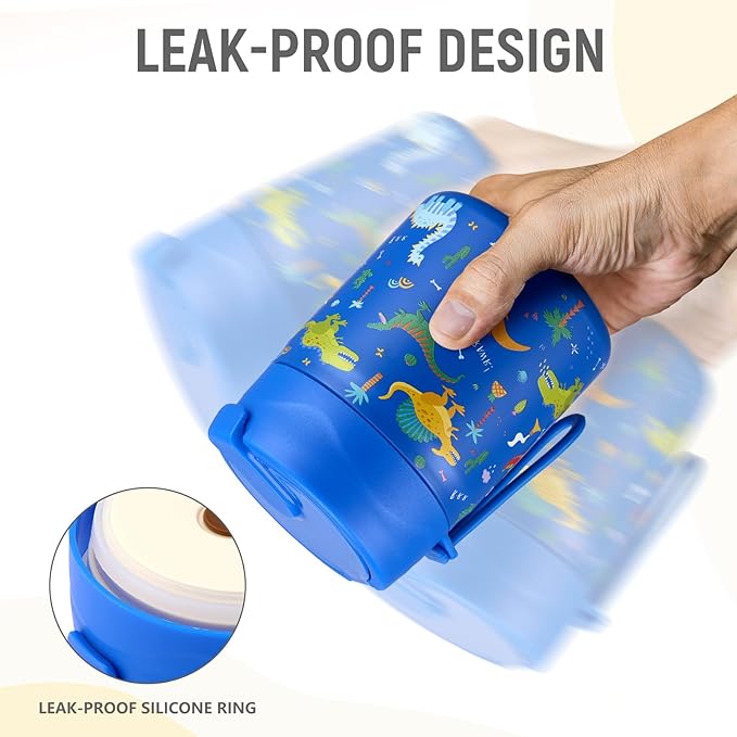 17oz Soup Thermo for Hot Food Kids Insulated Vacuum Food Jar with Stainless Steel Spoon Wide Mouth Thermo Leakproof Lunch Food Container Kids Hot Lunch Box (Blue-Dinasour)