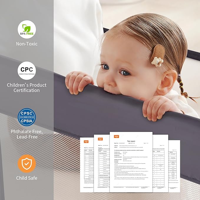 - [HEALTHY & PORTABLE]: Constructed with high-quality, non-toxic materials—including sturdy steel frames and easy-to-clean Oxford cloth—this portable baby play yard folds effortlessly for travel, allowing you to take it wherever you go while ensuring your child’s safety and comfort.