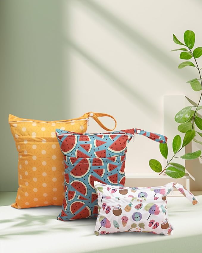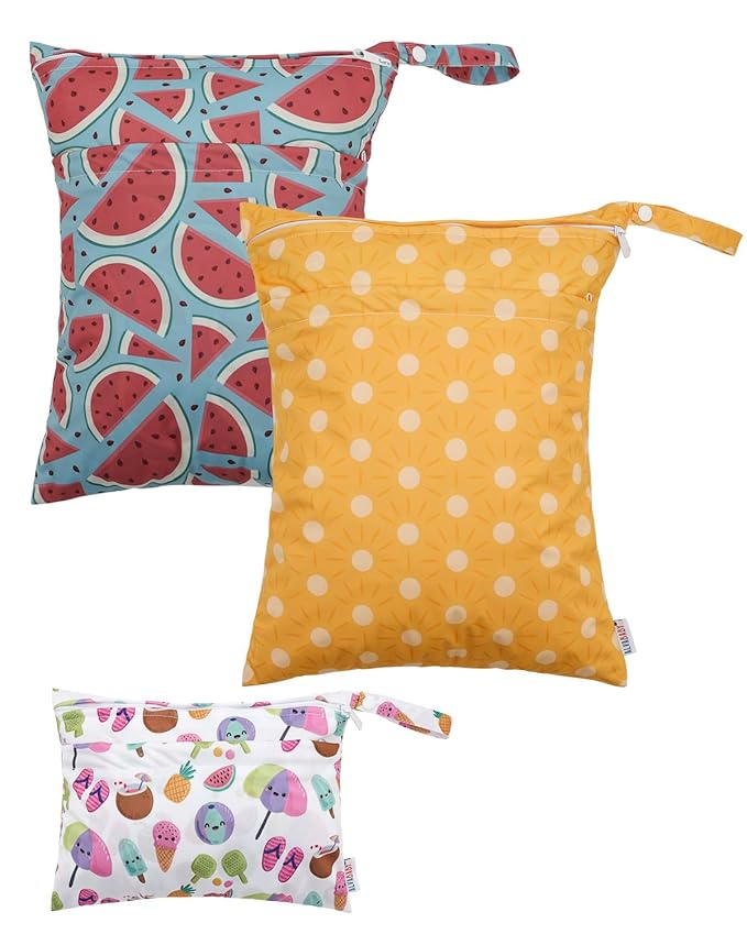 ALVABABY 3 Cloth Diaper Wet Dry Bags Waterproof Reusable with Two Zippered Pockets Travel Beach Pool Daycare Soiled Baby Items Yoga Gym Bag for Swimsuits or Wet Clothes Small medium Large 3L-SML06