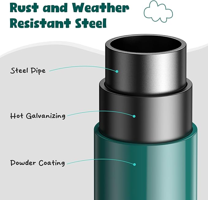 - 【Sturdy Playset】Constructed from 65 rust-resistant steel tubes, this heavy-duty outdoor climbing dome can support up to 800 lbs. (Max weight capacity for single tube is 133 lbs) The 10 green poles use thicker tubes for enhanced support