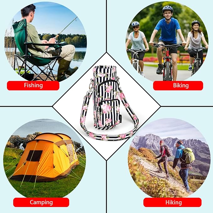 • PRACTICAL FEATURES;The bag can press the buckle to adjust tightness and fit bottles of different sizes,With a adjustable and removable strap,It is widely used for commute,hiking, cycling, camping, travel, or even if you're at the beach, sports events