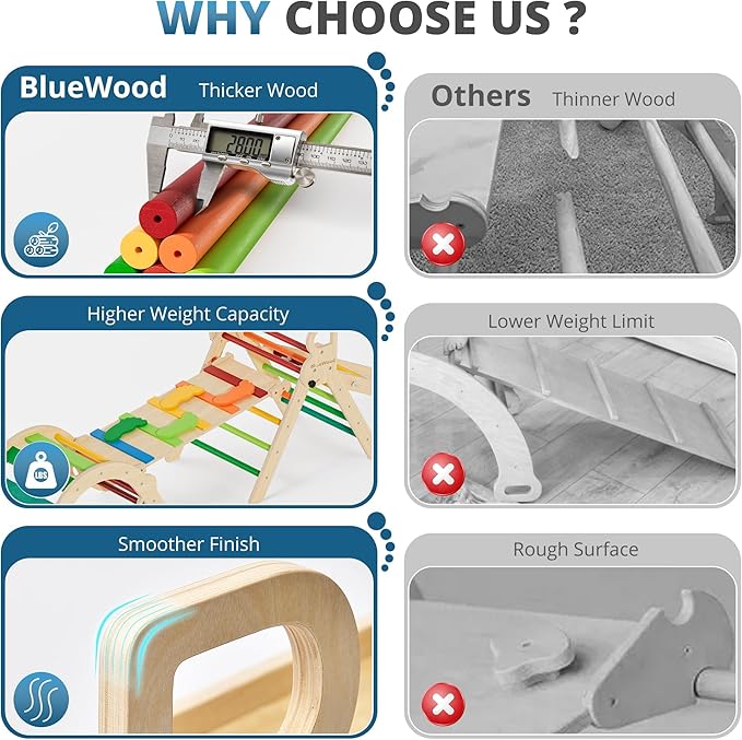 - Extra-Thick Design for Superior Stability: The extra-thick wood design supports up to 150 lbs, ensuring stability and safety. Its sturdy construction makes it durable for years of active play