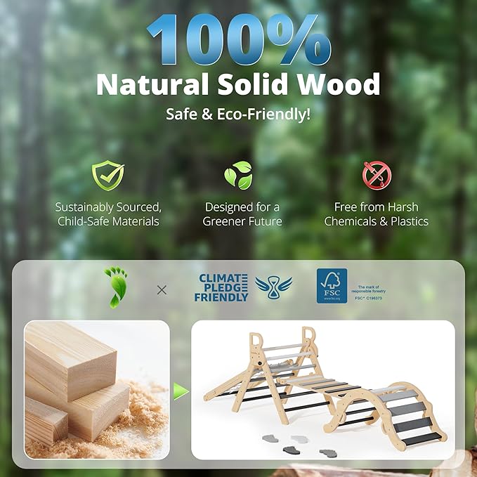 - Endless Play with Four-Piece Set: Our Pikler Set has four pieces: triangle climber, arch, ramp, and a rope ladder. It offers ten play combinations for endless fun. Designed with Montessori principles, it encourages exploration and learning