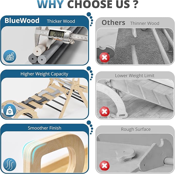 - Extra-Thick Design for Superior Stability: The extra-thick wood design supports up to 150 lbs, ensuring stability and safety. Its sturdy construction makes it durable for years of active play