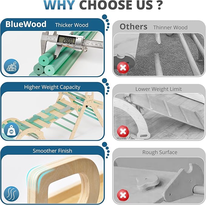 - Extra-Thick Design for Superior Stability: The extra-thick wood design supports up to 150 lbs, ensuring stability and safety. Its sturdy construction makes it durable for years of active play