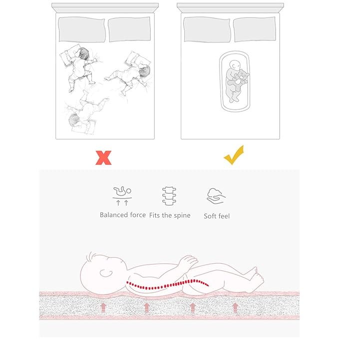 - LENGTHEN SPACE:Newborn lounger size is about 34.6'' L x 21'' W,lengthen space to 3 years old and weighs only 2.65 pounds (1.2 kg),with vacuum packaging and Portable Bag design that makes the newborn lounger a must-have for baby on the go