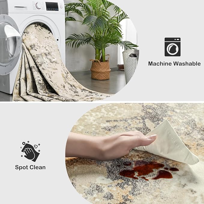 - Machine Washable Rug with Hydrophobic Technology: Designed for 50+ machine washes without fading, and spills disappear with one wipe thanks to water-repellent surface. Perfect for busy households with kids or pets