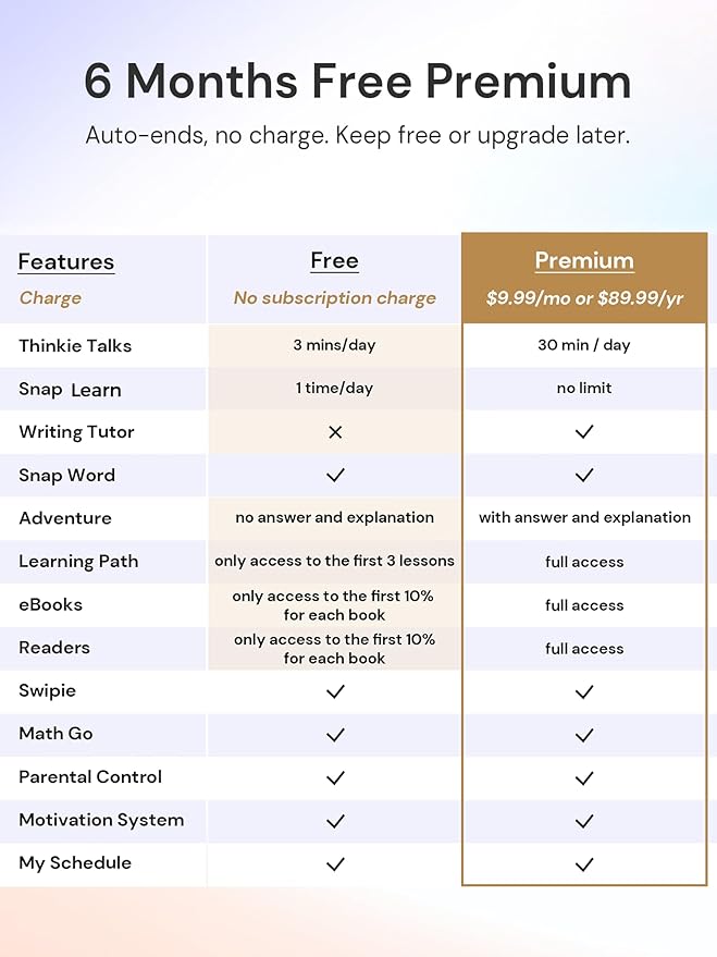 - [ Age-Tailored Learning Framework ] - Grows with your child: From Pre-K to Grade 1, enjoy interactive reading tutors and foundational skill paths; Grades 1-4 dive into math adventures, vocabulary builders, and efficiency-boosting tools; Grades 3-6 advance with AI writing coaches and problem-solving mastery—all designed to support every academic stage.