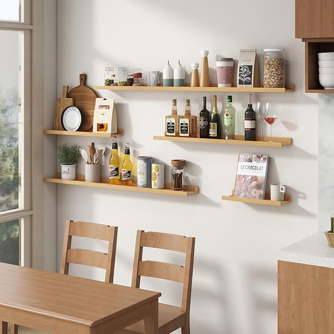 - 【Versatile and Multi-Functional】These shelves aren’t just for photos! FLYJOE ledge shelves can be creatively used as kids' bookshelves, display shelves for collectibles, spice racks in the kitchen, or even over-the-toilet storage in the bathroom. Their adaptability makes them a practical choice for any room in your home