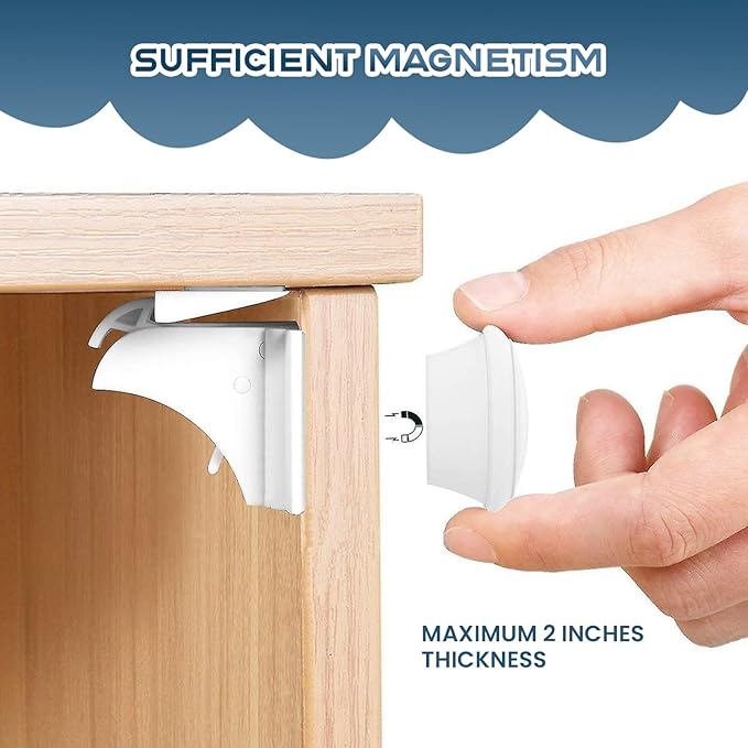 Blessimo® 12 Pack Magnetic Cabinet Locks Baby Proofing with 12 locks and 2 Keys - Child Locks For Kitchen, Cabinets and Drawers - 3M Adhesive Easy Installation