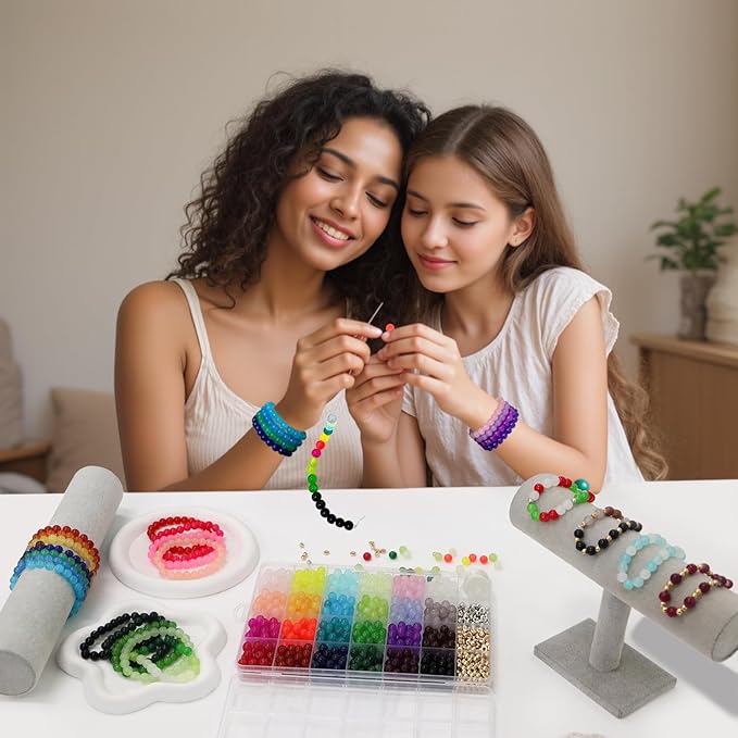 - GREAT GIFT: Our crystal glass beads bracelet making kit, featuring delightful glass bead charms, is an ideal present for those with a passion for handmade jewelry. It makes an excellent gift for kids, girl teens, and even adults eager to create their own jewelry pieces or craft jewelry for friends. The kit not only helps kids divert their attention from video games but also significantly enhances their creativity. Engaging in fun parent - child activities with this kit strengthens the bond between parents and kids.It serves as a wonderful gift for various occasions such as birthdays, Thanksgiving, Valentine's Day, Mother's Day, and Christmas.