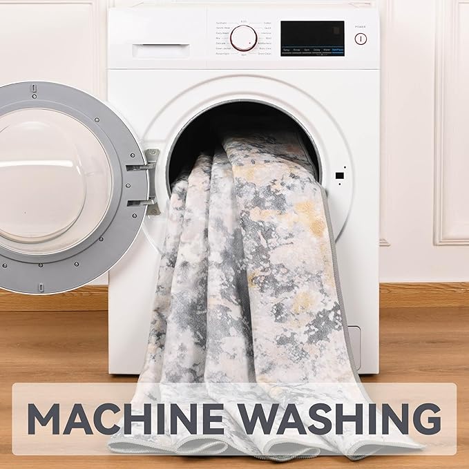 Area Rug 4x6 Washable Grey Rug for Bedroom, Abstract Modern Living Room Rugs Non Slip Low Pile, Carpet for Kitchen, Nursery, Kids Room, Office