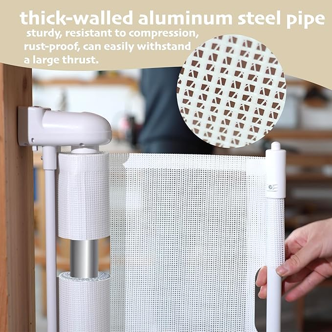 - Extra Wide for Large Opening - We’ve expanded the width to 150 inches, making it perfect for separating stairs from various areas like the living room and kitchen. It’s also great for use in the garage, keeping your curious child or pet safe and sound. Plus, it can serve as a fence for your spacious outdoor terrace, yard, or garden. The mesh can be fully retracted when not in use, making it easy to store and disassemble.