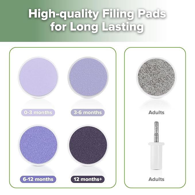- SAFE & GENTLE: With a pressure-activated safety system, our electronic baby nail file is gentle on tiny fingers, preventing injuries and giving parents peace of mind.