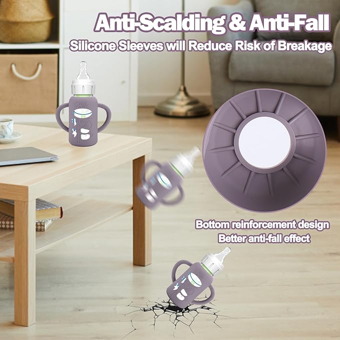 - Unique Designed for Baby Bottles - The silicone sleeves for Dr. Brown's Baby Bottles can against drop down,bumps and scratches. These are a must essential product for using glass baby bottles. They provide a more sturdy protection for glass baby bottle from breaking if dropped, which also unique handle design shape make it easier to grip and hold