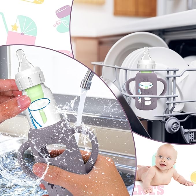 - Comfortably Use of Bottles - The fashion design silicone sleeve for Newborn baby bottles help grip for mom and also helps baby hold his bottle when it comes time for them to hold it . These bottle handles can be used for clean by dishwashers ,easy to clean.The silicone sleeve for Dr. Brown's bottle comes in cute colors and an adorable little cut out, so that you can easy to know amount of milk left